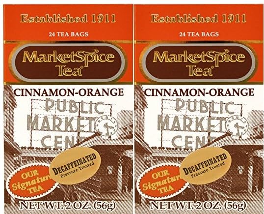 Originating in Seattle's historice Pike Place Market, Marketspice tea is a delightful tea that has won over the hearts of tea lovers world wide. Pressuer treated-the most natural decaffeinating process. Each package contains 24 tea bags. Two packages per order, making a total of 48 tea bags.