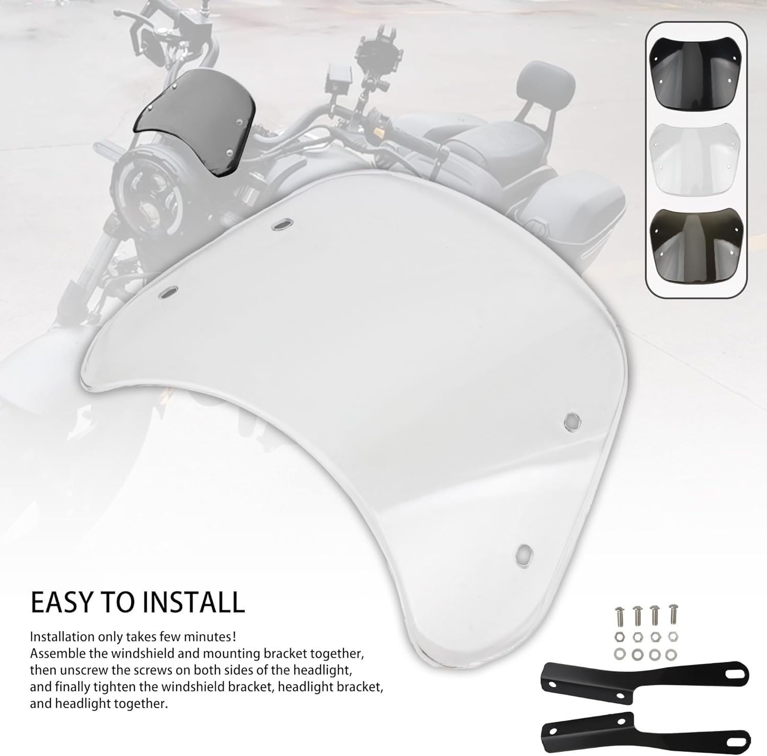 Custom Universal 5-7 inch Round headlights fit most motorcycle. This motorcycle windshield is only suitable for motorcycles with screws on the side of the headlights, which can be fixed together with the headlight bracket.