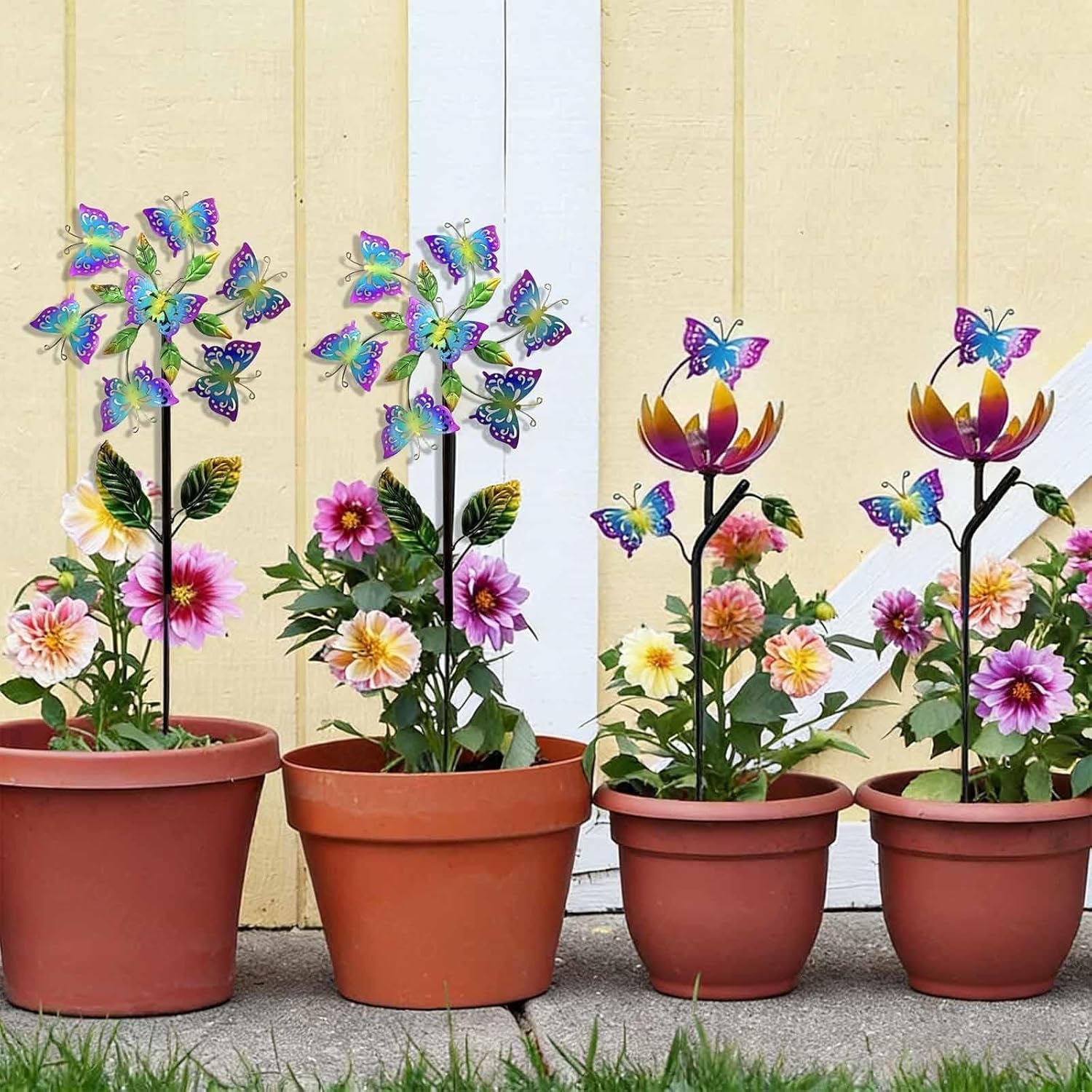 Butterfly wind spinner is not only a perfect outdoor decor for your yard, garden, patio, or pathway, adding a touch of floral charm to your outdoor space,When the garden wind spinners rotates, it will relax your emotions. Use the courtyard wind spinners to bring color and decoration to your outdoor living space, creating a quiet and relaxing private space. But also an ideal gift for family and friends who love gardening or unique home decorations.Specification:Material: IronSize chart:A:33cmx117cm/13inchx46inchB:25cmx117cm/9.8inchx46inchPackage includes:2 Packs: 2* butterfly wind spinner(packed in a box)4 Packs: 4* butterfly wind spinner(packed in a box)Note:Please allow slightly errors 1-2cm differences due to manual measurement.