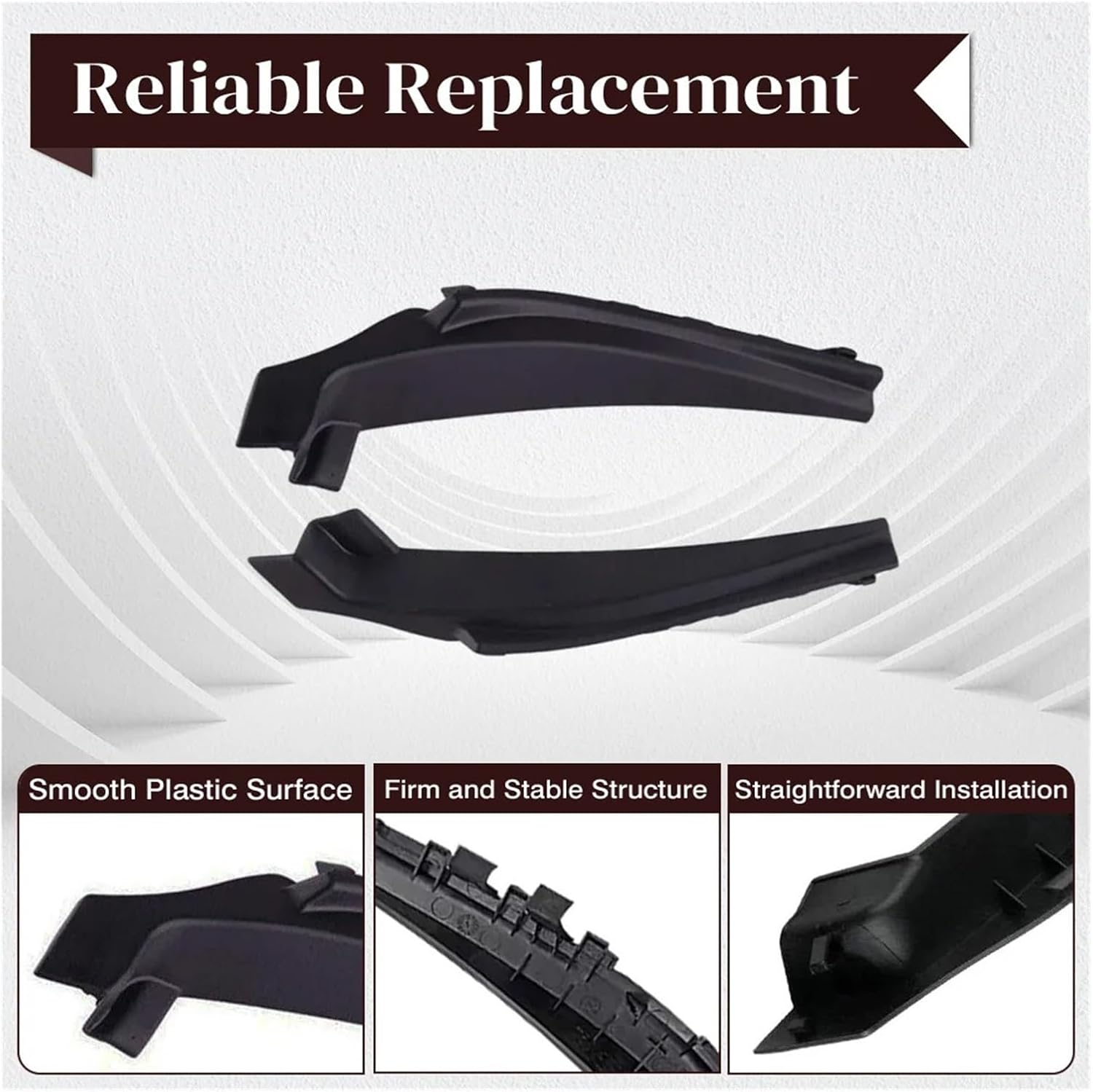 Product DescriptionType: Windshield Pillar Decorative PanelName: Windshield Pillar Decorative Panel / Windshield Seal BlockFitment Type: Direct InstallationFeatures:Crafted from high-quality ABS material with fine workmanship for long-lasting durability.Classic black finish and minimalist design add a sleek and vibrant touch to your car's appearance.Package Contents:of Windshield Pillar Trim Strip Sealing BlocksNote:Please verify your vehicle's details and exact OE number to ensure compatibility before purchasing.