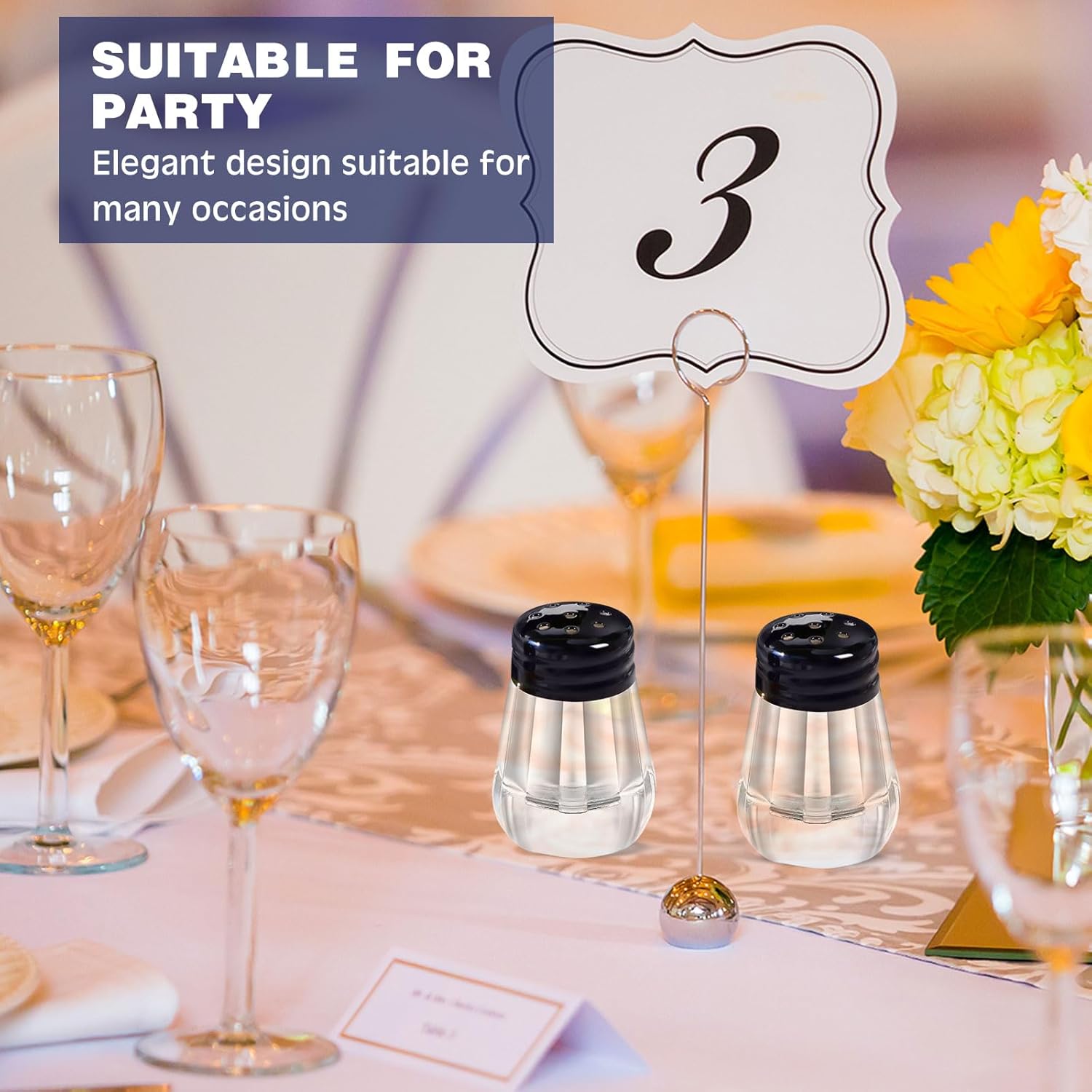 Features: Elegant and practical: Salt and pepper shakers for picnic are designed with small hole black lids to help you spread the seasoning evenly on the food. Suitable for many scenarios: The kitchen salt and pepper shakers set is suitable for many scenes indoors and outdoors. You can share them with your partners, family, and neighbors who own restaurants or like to cook. Specifications: Main material: glass Color: transparent body, black lid Weight: 30 grams Package includes: 100 x Mini salt and pepper shakers Notes: Manual measurement, please allow slight errors on size. The color may exist a slight difference due to different screen displays. Do not play clear mini seasoning shaker with children to prevent the seasoning from getting into the eyes. Do not place it on the verge of the table to prevent it from breaking.